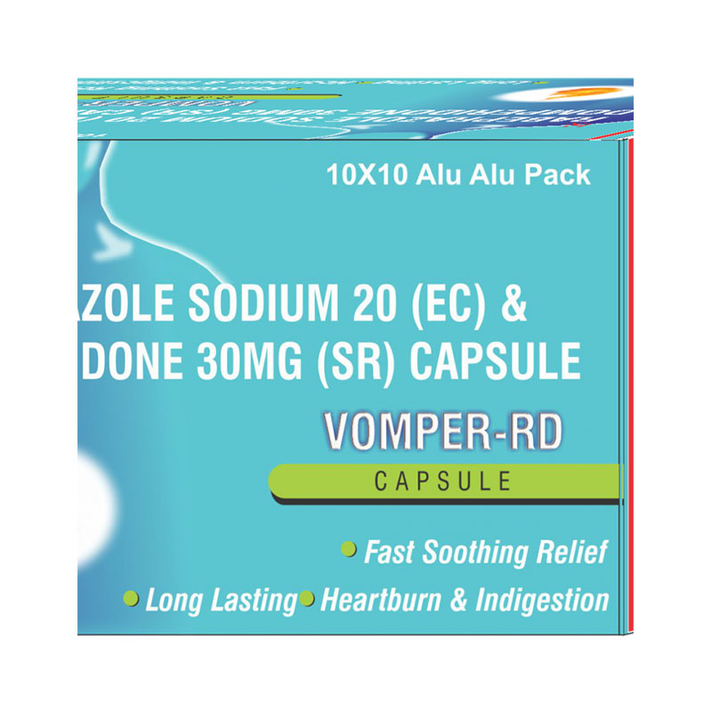 Domperidone 30 Mg in Vomper-RD Capsules is a prokinetic which works on the upper digestive tract to increase the movement of the stomach and intestines, allowing the food to move more easily through the stomach. Retention of PPIs in the stomach for longer time due to dysmotility and delayed gastric emptying in patients with GERD may result in an impaired acid suppression. Therefore, their rapid transit to the upper intestine is beneficial. Key Points: